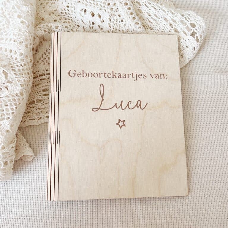 De ideale manier om de gekregen geboortekaartjes goed te bewaren voor jouw kleintje. De binnenkant van de houten map heeft 2 gaatjes waardoor je de kaartjes gemakkelijk kunt bewaren door gaatjes in de kaartjes te maken of ze te bewaren in een doorzichtig mapje.