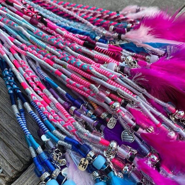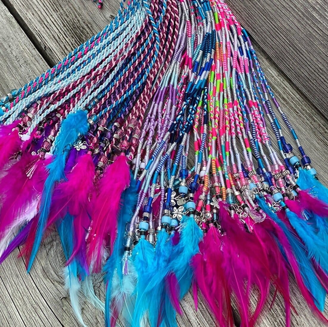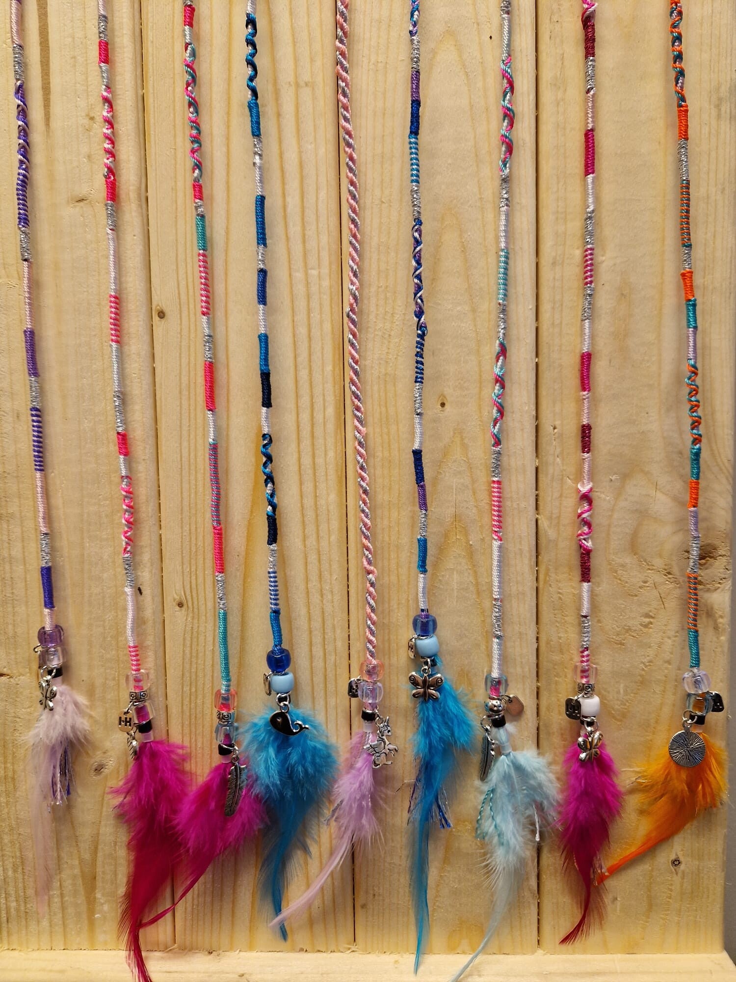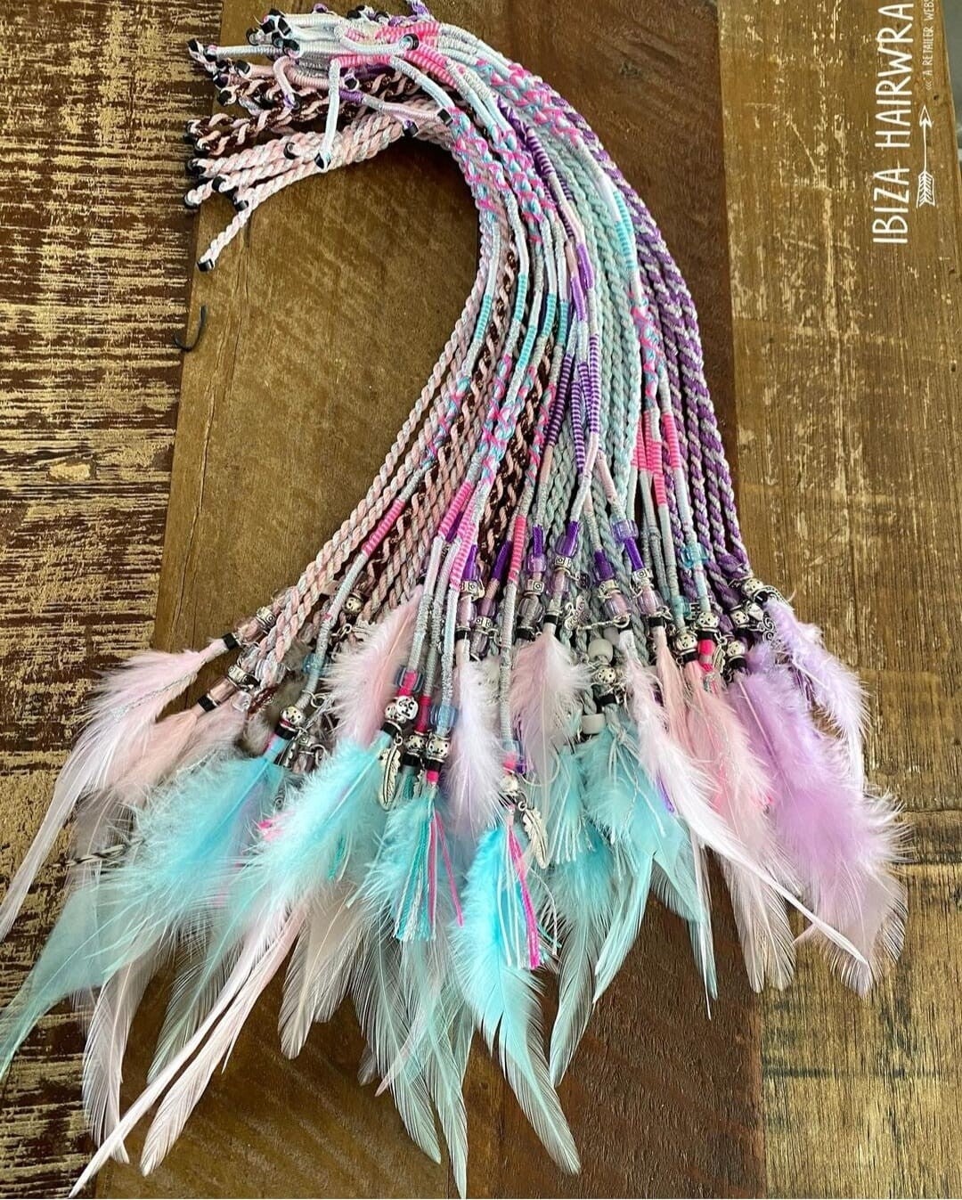 De Ibiza hairwraps zijn mooie, vrolijke hairwraps gemaakt van prachtig glanzend glitterdraad in verschillende vrolijke kleurtjes. De hairwraps zijn afgewerkt met verschillende kraaltjes, bedeltjes en super mooie veer.