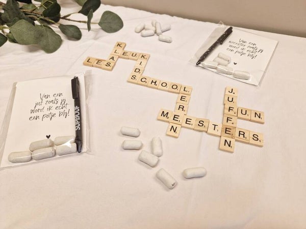 In onze speciale cadeauset voor juffen en meesters vind je alles om je waardering te tonen. Deze set bevat een prachtig vormgegeven kaart met een hartverwarmende boodschap, een stijlvolle pen voor het markeren van bijzondere momenten en heerlijke krijt dropjes om een zoete noot toe te voegen aan hun dag.