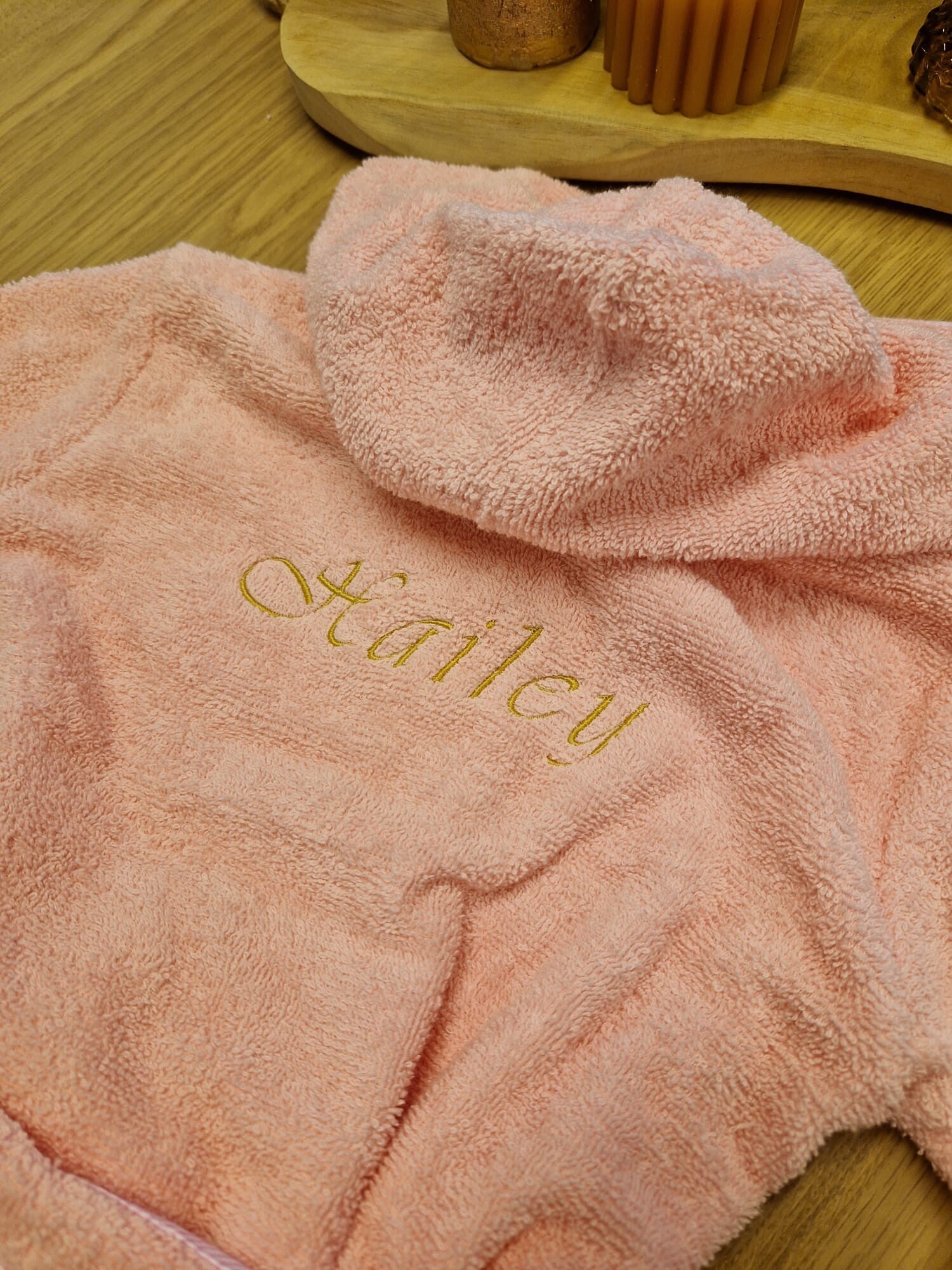 Maak badtijd extra speciaal voor jouw kleintje met onze prachtige badjas, geborduurd met hun naam! Zachte en knuffelbare badjasjes, perfect om ze warm en comfortabel te houden na een ontspannend badje. Personaliseer met hun naam voor een uniek tintje! Een liefdevol cadeau dat elke keer weer glimlachen op hun gezicht tovert. Bestel nu en geef ze een ervaring van luxe en comfort!