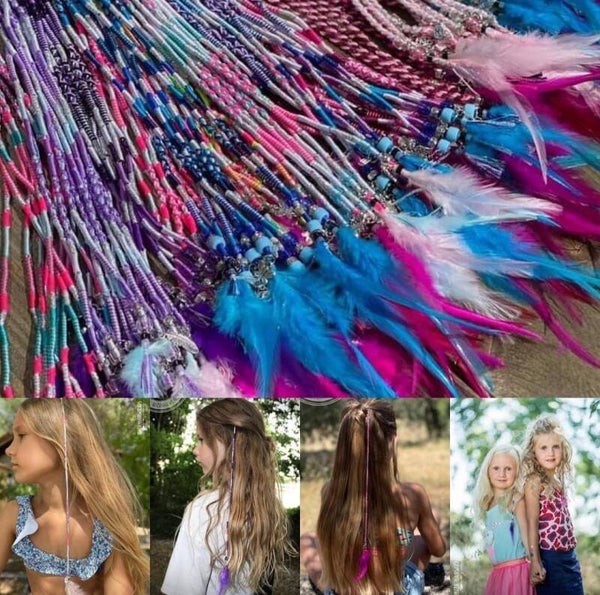 De Ibiza hairwraps zijn mooie, vrolijke hairwraps gemaakt van prachtig glanzend glitterdraad in verschillende vrolijke kleurtjes. De hairwraps zijn afgewerkt met verschillende kraaltjes, bedeltjes en super mooie veer.