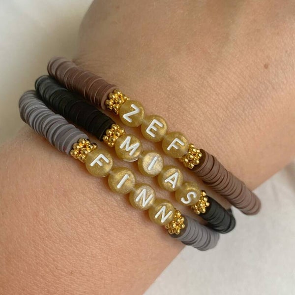 Onze naam armbandjes worden met de hand gemaakt. De bandjes zijn van elastiek waardoor vrijwel iedereen onze armbandjes past. De Katsuki naam armbandjes zijn de trend van het moment en helemaal hip. De naam armbandjes zijn ook erg leuk als kind-ouder armbandjes.