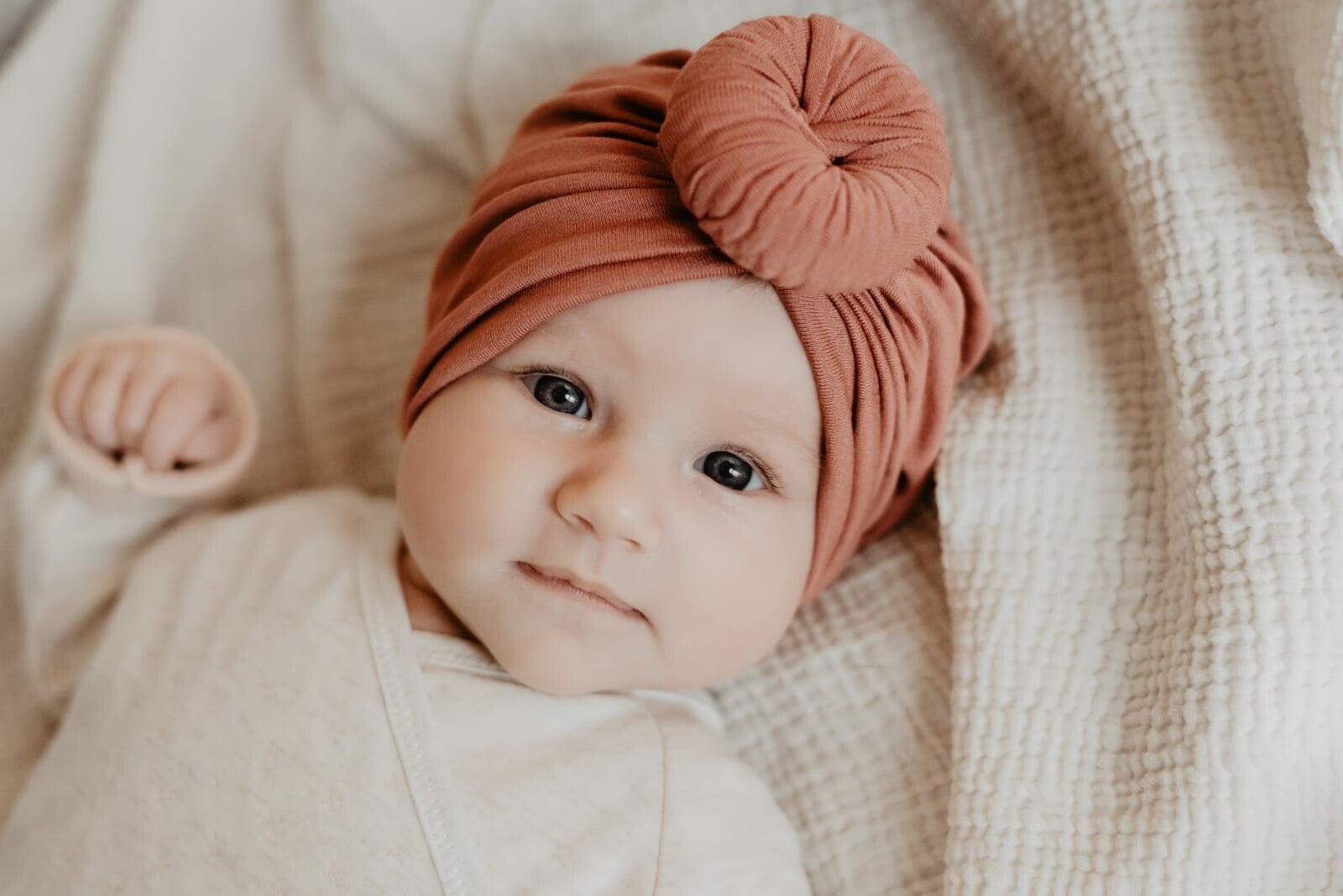 De turban is van stretch stof en voelt heerlijk zacht aan op het hoofdje van jouw kleintje.